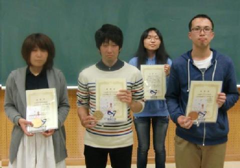 社会経営工学プログラムにおいて、平成26年度社会開発システム工学科賞表彰式を、教員臨席のもと執り行いました。山田教授から表彰状と記念メダルが贈られました。